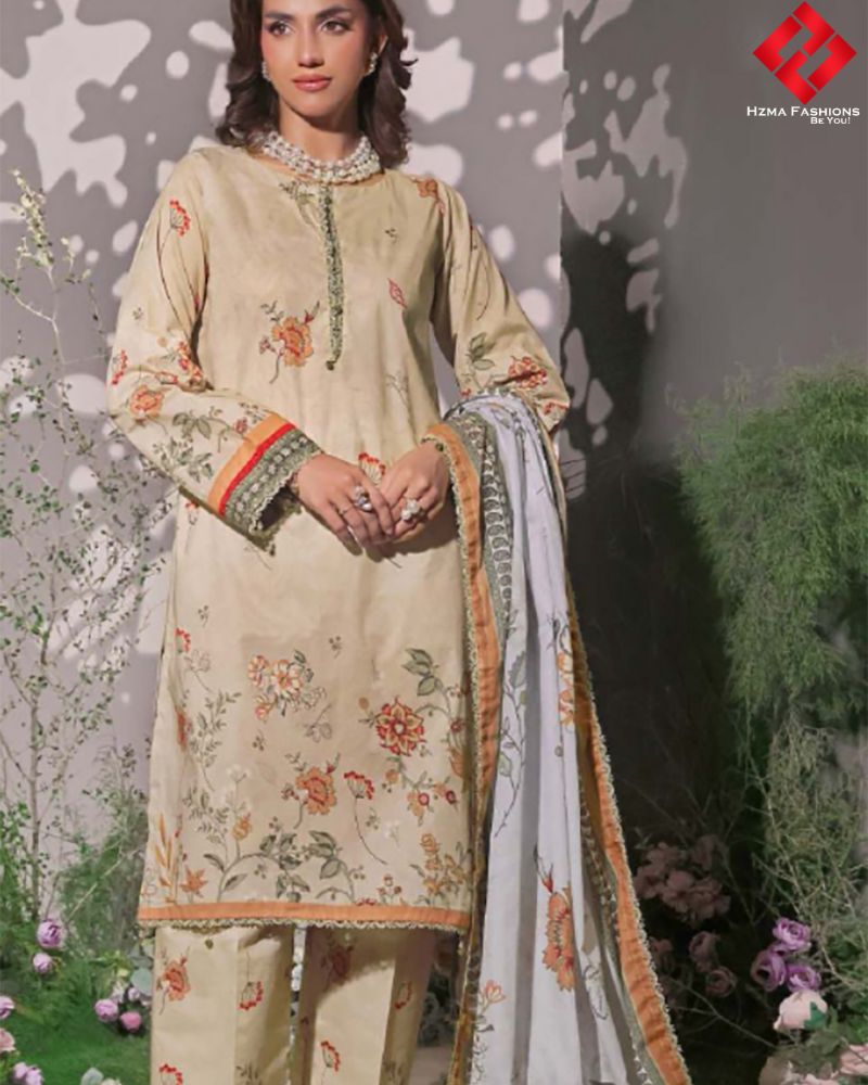 The dupatta, made from digital printed voile lawn, not only adds a delicate, airy touch to the outfit but also elevates its overall elegance. Thanks to its semi-sheer, featherlight texture, the voile dupatta effortlessly enhances movement and grace. Moreover, its versatile drape makes it ideal for layering in multiple styles, whether you prefer a casual shoulder drape or an intricately styled look. Additionally, the lightweight fabric ensures all-day comfort, while the digitally printed design seamlessly ties the entire ensemble together.