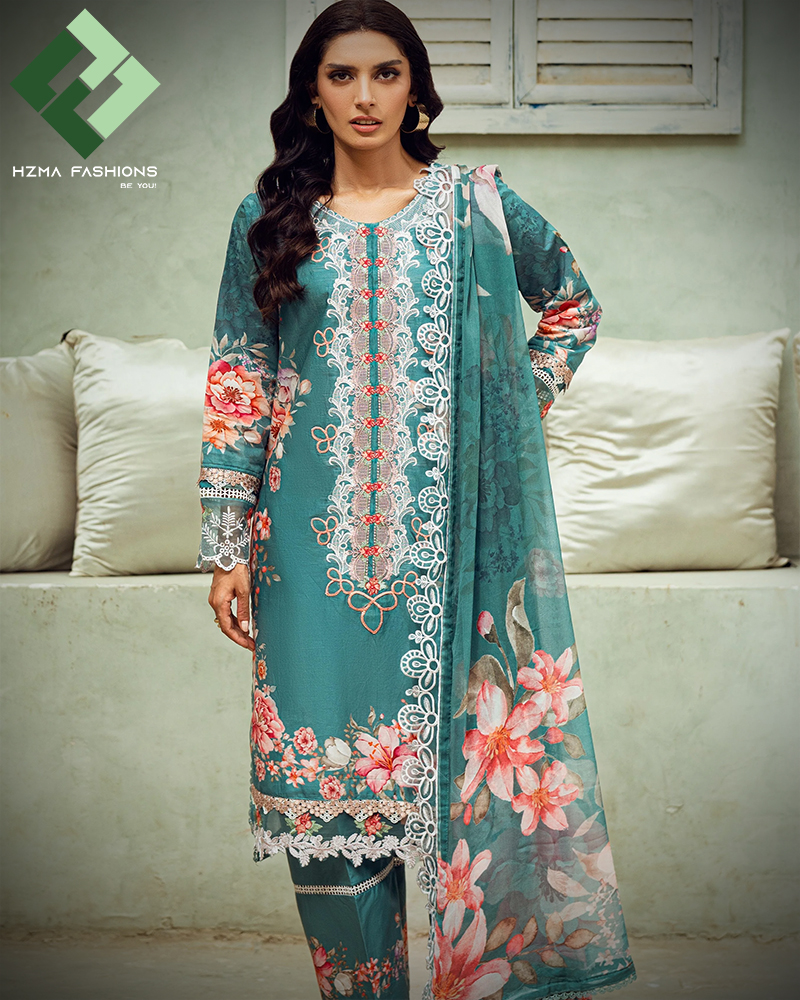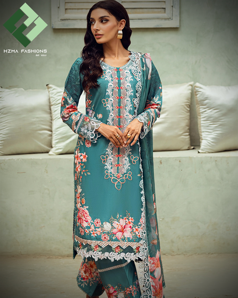 The outfit includes a digitally printed chiffon dupatta. Additionally, intricate embroidery on the dupatta creates a sophisticated appeal. It drapes beautifully, making the attire even more glamorous. Whether you wear it casually or formally, the dupatta will elevate your entire look.