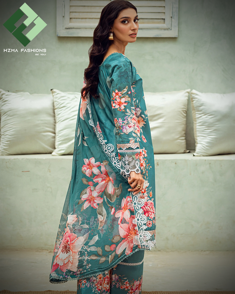 A matching cotton trouser completes this ensemble. Its digital print keeps the design balanced while ensuring comfort. Therefore, you can wear it all day without losing style or ease. The trouser pairs seamlessly with the shirt and dupatta for a refined finish.